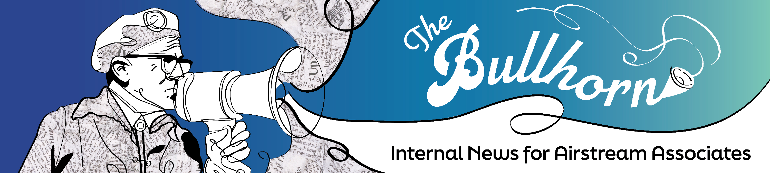 Created for Airstream's Internal Newsletter, this banner adds flair to every Airstream news announcement. Wally Byam, the company's founder, holds his iconic bullhorn next to the logo of the newsletter, The Bullhorn. This banner was created during an Airstream graphic design internship.