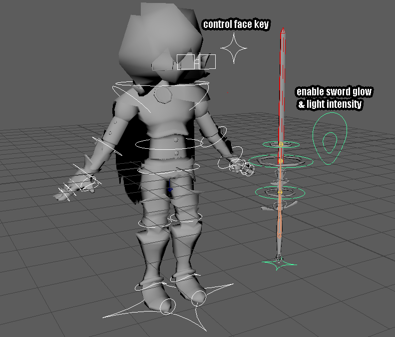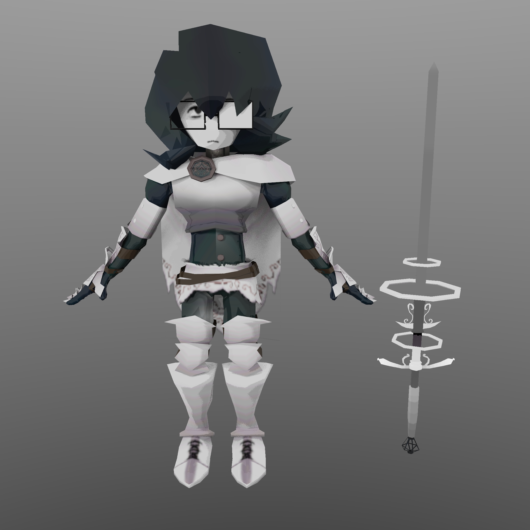 I transformed my Dungeons and Dragons character into a PS1-style low-poly 3D character model! She is rigged with nCloth physics on her skirt and cape. She also has face texture keys for different expressions. Her sword is also rigged to control a glowing effect. To get the pixel effect, I used an aiToon material combined with anti-aliasing effects and disabling the denoiser. I increased sampling on the lights to combat the heavy noise.